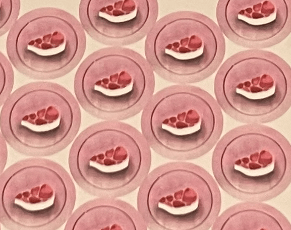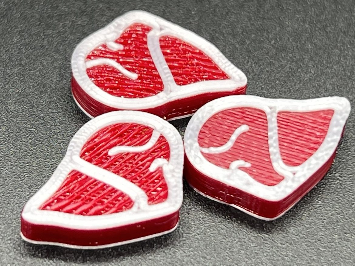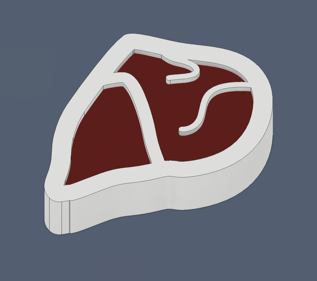 To get a rough shape for the steak, I prompted AI in Adobe Illustrator to generate an image in red and white of a steak with marbling. I picked the one I liked and traced the image. This gave me a vector image file that was able to cleanup in order have the outline and marbling to be multiples of my printer nozzle diameter (0.4 mm).