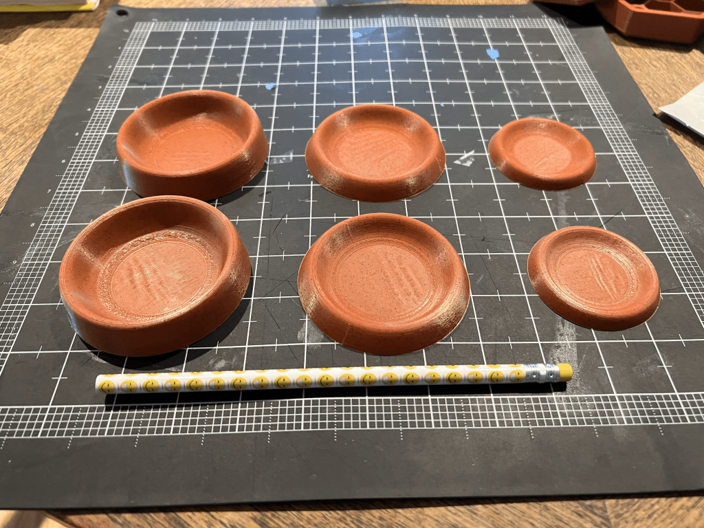 I printed the tray in two different sizes and lowered the height some as well. In the end, the lower height turned out to be something I would reverse down the road. The 0.8 mm wall thickness proved to be sufficient when printed in PLA for normal game wear and tear. I’m not sure how they would survive a drop test.